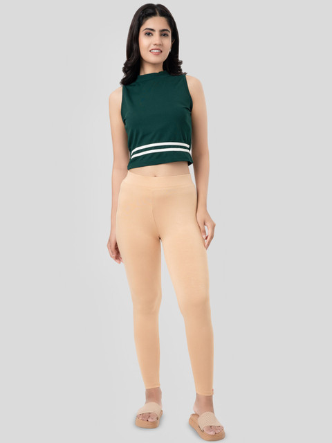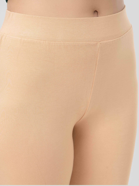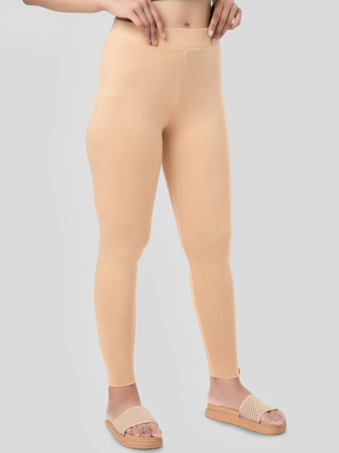 Beige solid ankle-length leggings, has an elasticated waistband with slip-on closure