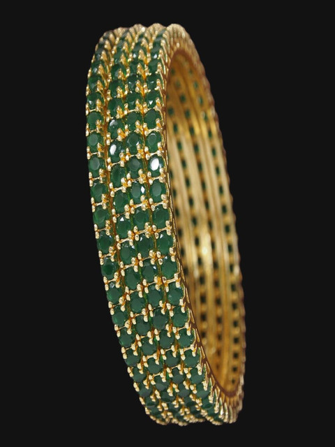 Gold-plated and green artificial stones studded details bangles
