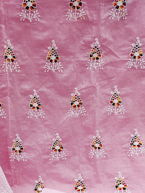 Pink and white embroidered kurta fabric
