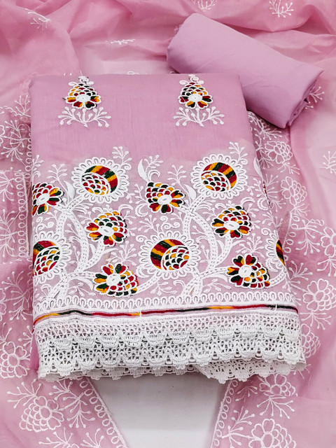 Pink and white embroidered unstitched dress material
