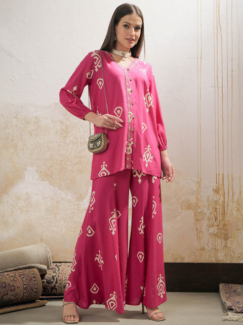 This co-ords has shirt and palazzos