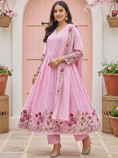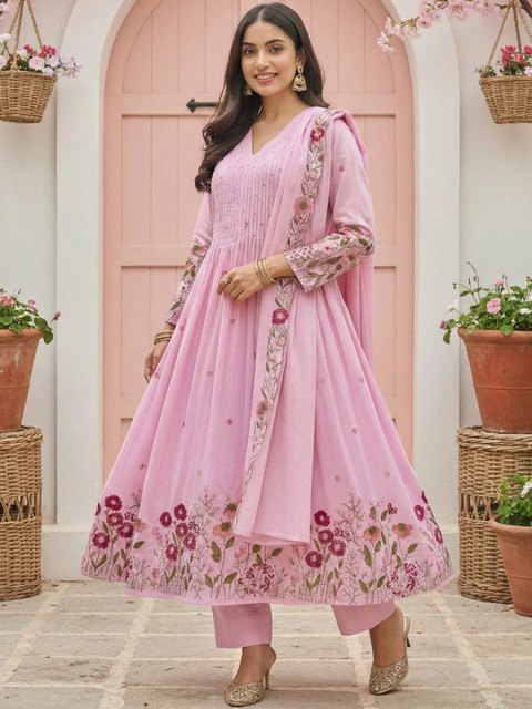 Pink embroidered Kurta with Trousers with dupatta