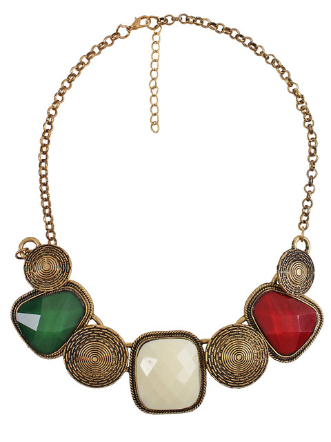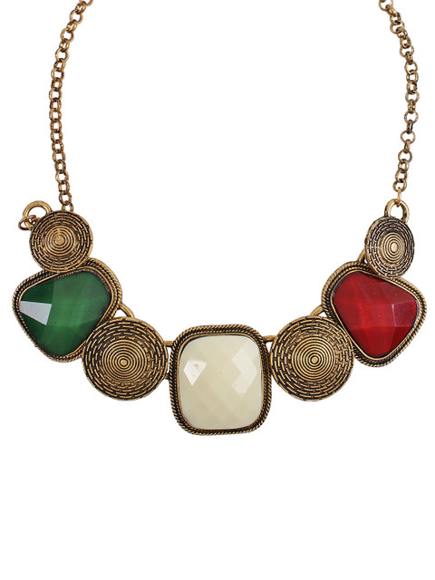Antique gold-toned necklace, has a stylised centrepiece with faceted stone work