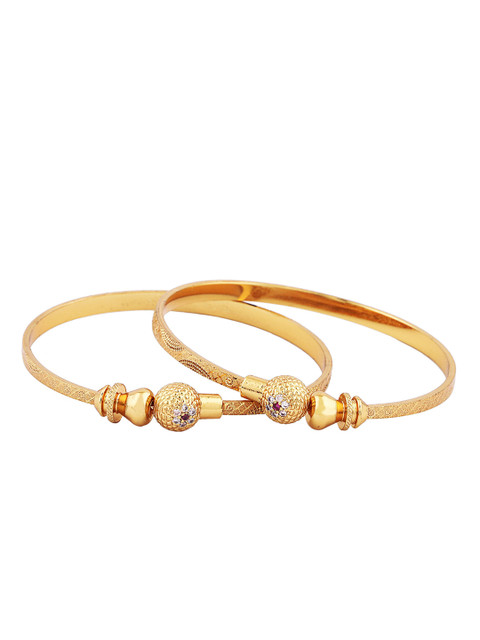 Set of two gold-plated bangles, each has white and crystal-studded details, secured with slip-on closure