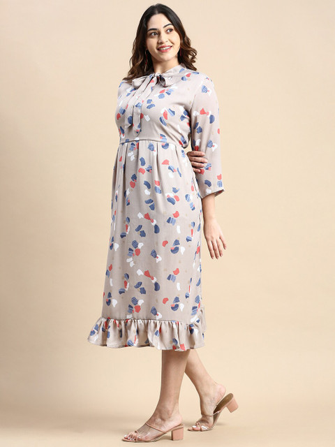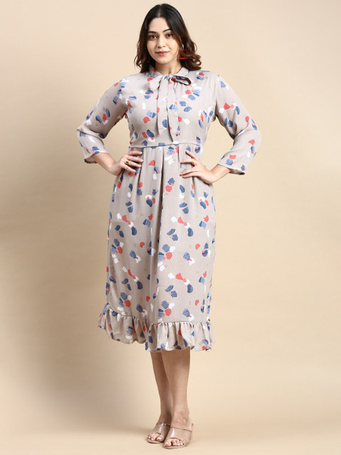 - Grey abstract printed a-line dress