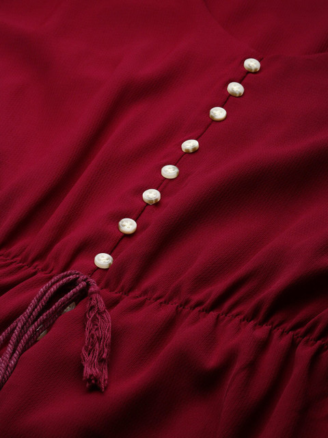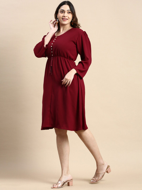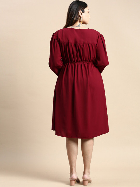 - Burgundy solid fit & flare dress