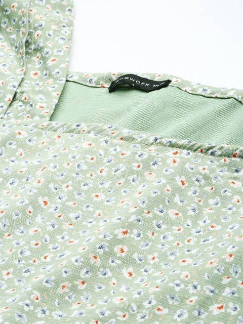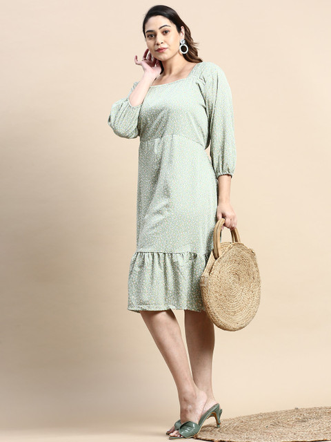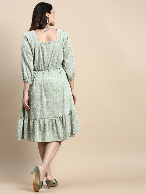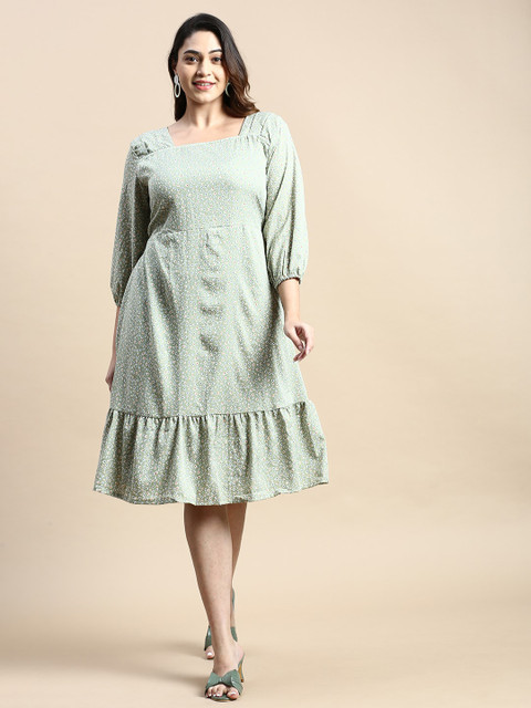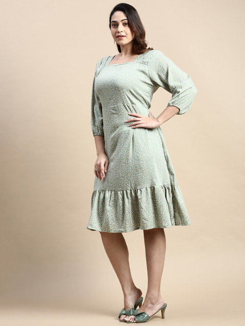 - Green and blue floral printed fit & flare dress