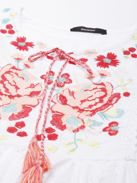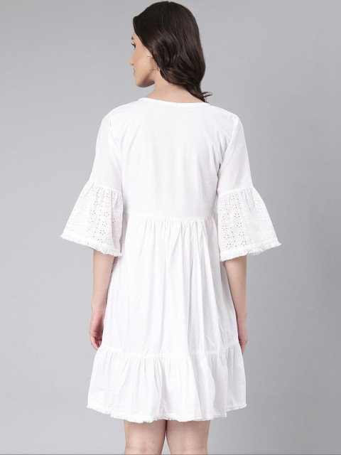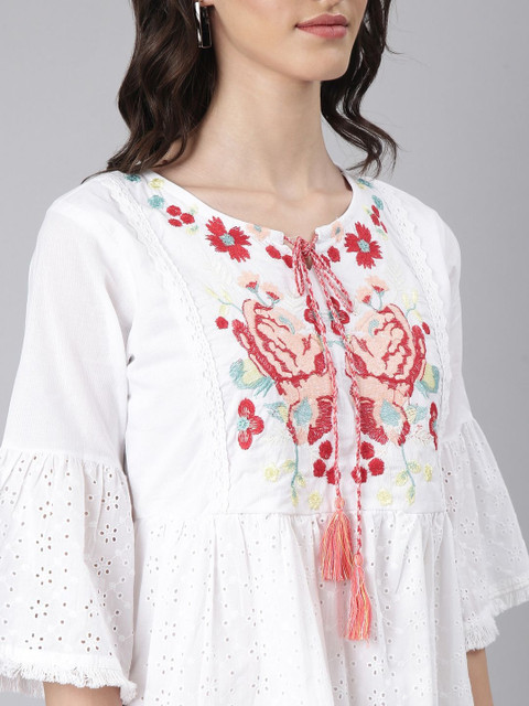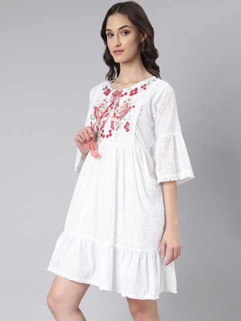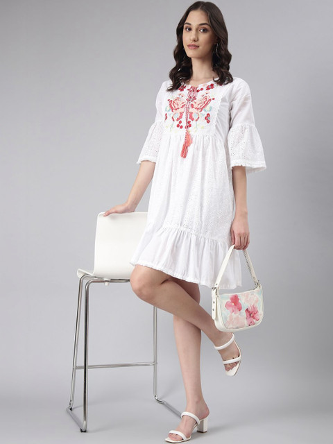 - White and white floral embroidered a-line dress