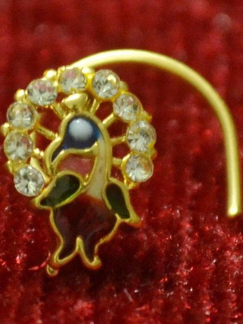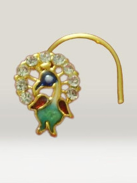SHREEVARAM Diamond Gold-Plated Brass Nose Ring