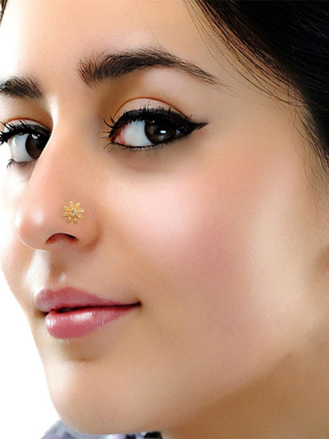 SHREEVARAM Gold-Plated Cubic Zirconia Stud Nosepin