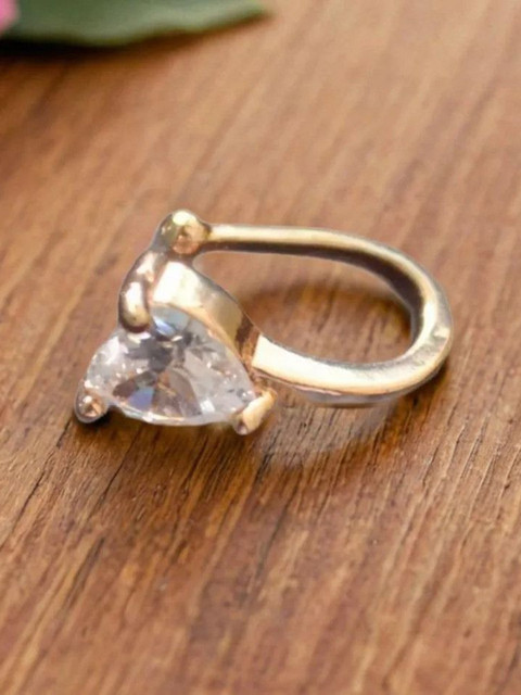 Gold-toned and white cubic zirconia studded stud clip-on closure, gold-plated