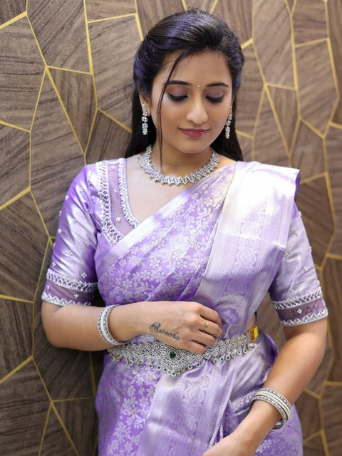 The blouse worn by the model might be for modelling purpose only. Check the image of the blouse piece to understand how the actual blouse piece looks like.