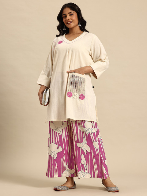 - Floral embroidered