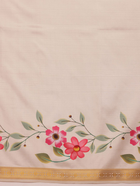 - Off white and pink kasavu saree