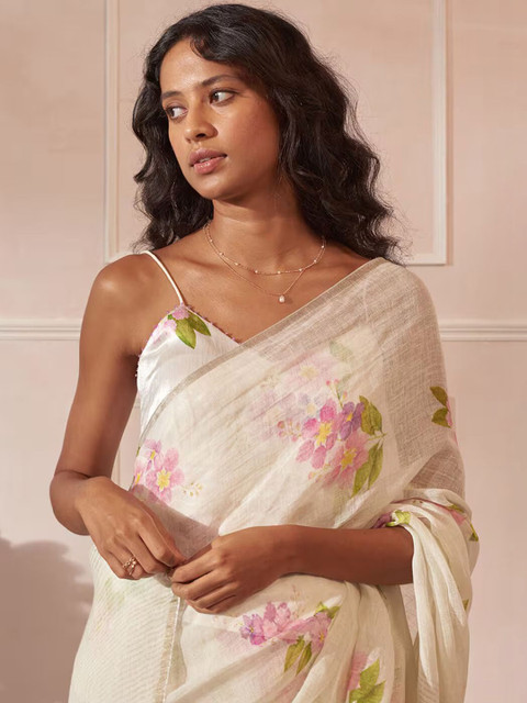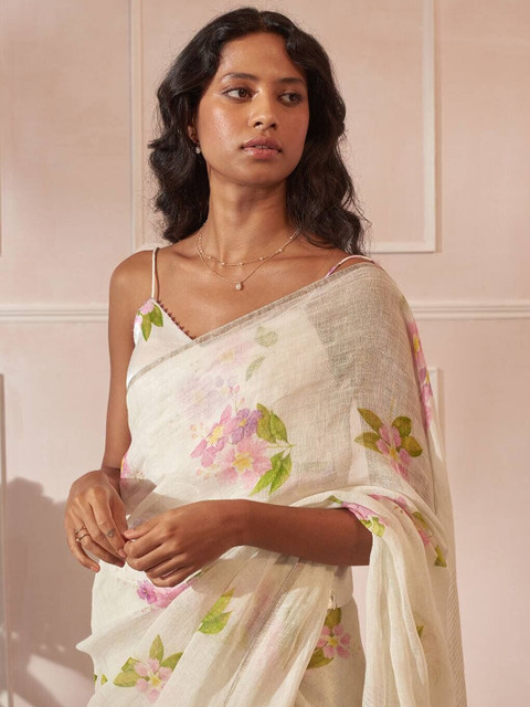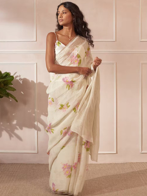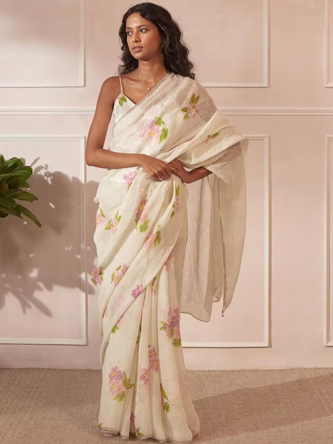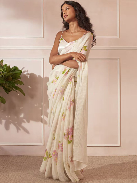 SILKWEAR Floral Linen Blend Designer Saree