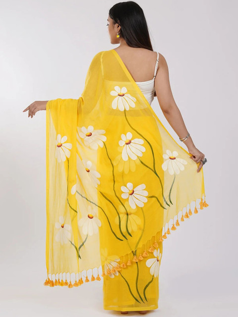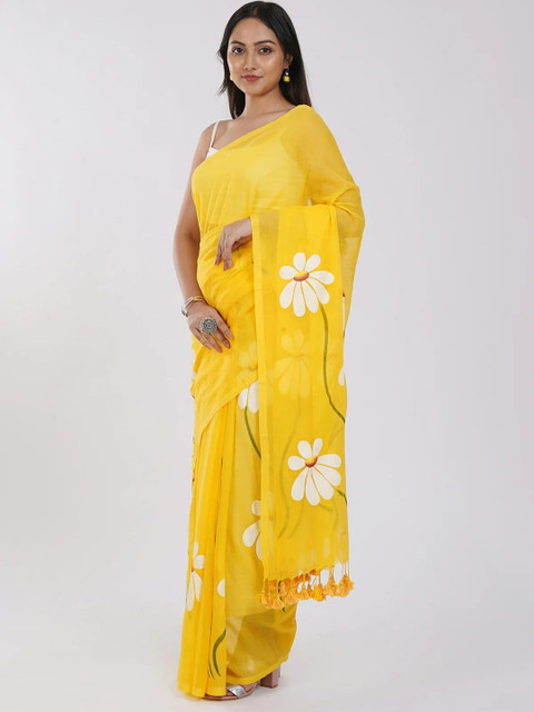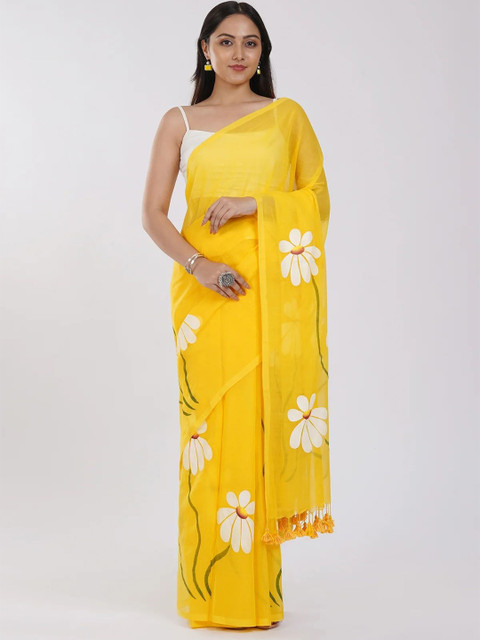 SILKWEAR Floral Printed Pure Linen Saree