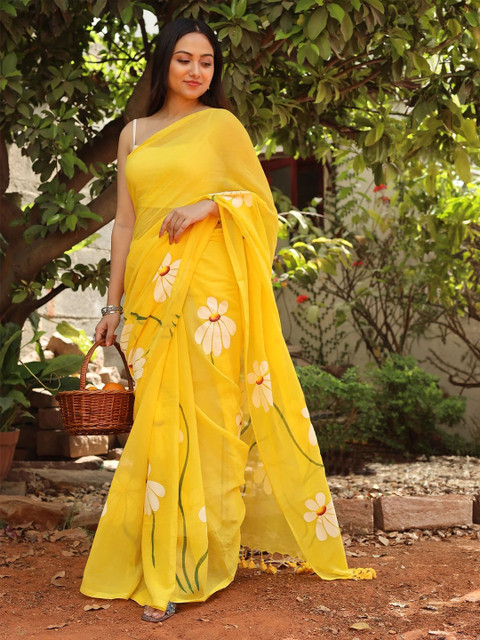 • Floral printed saree with no border