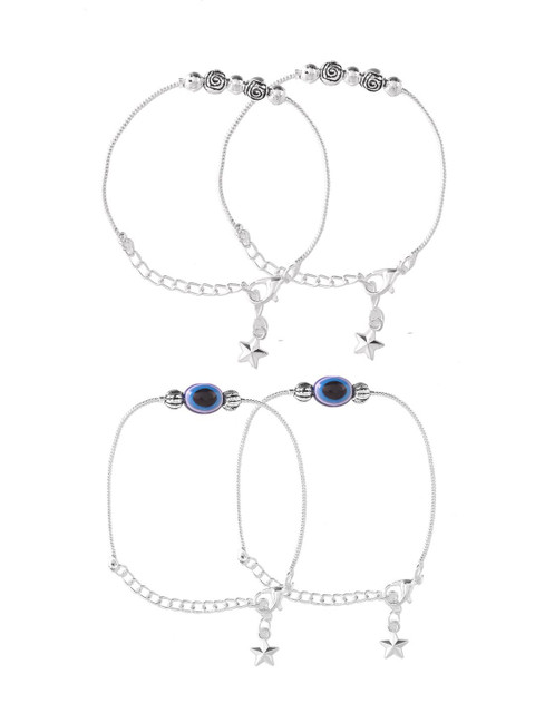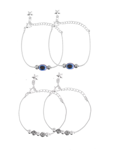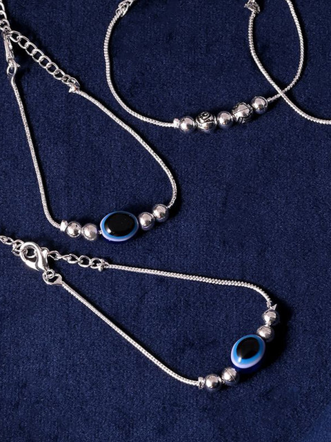 Silver-toned & blue silver-plated artificial beads Studded anklet lobster closure