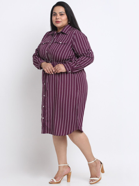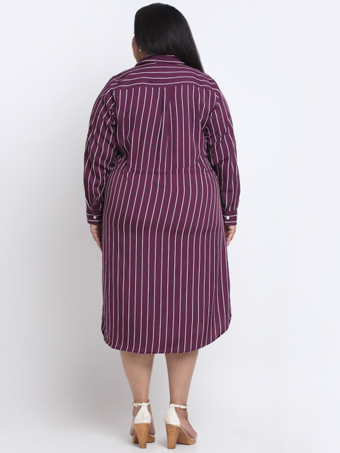 - Maroon striped striped shirt dress