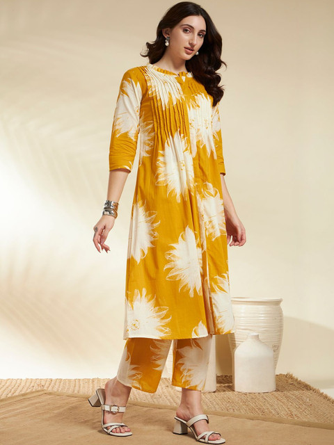 Mustard printed palazzos, has an elasticated waistband with slip-on closure with 1 pocket
