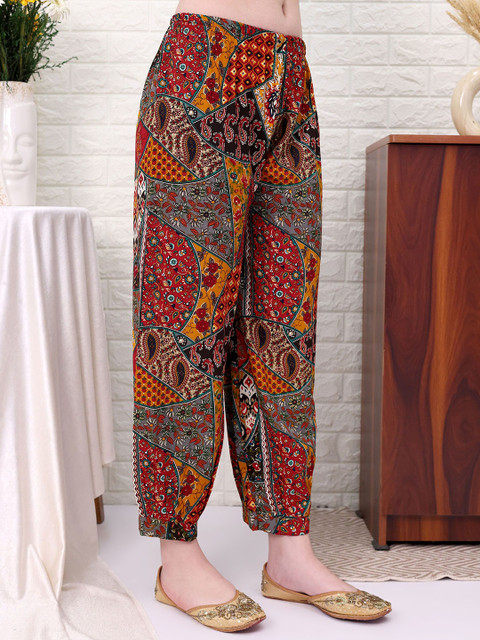 Yellow, red and black printed dhoti pants, has an elasticated waistband with slip-on closure