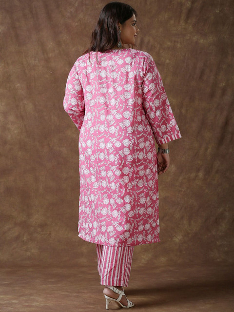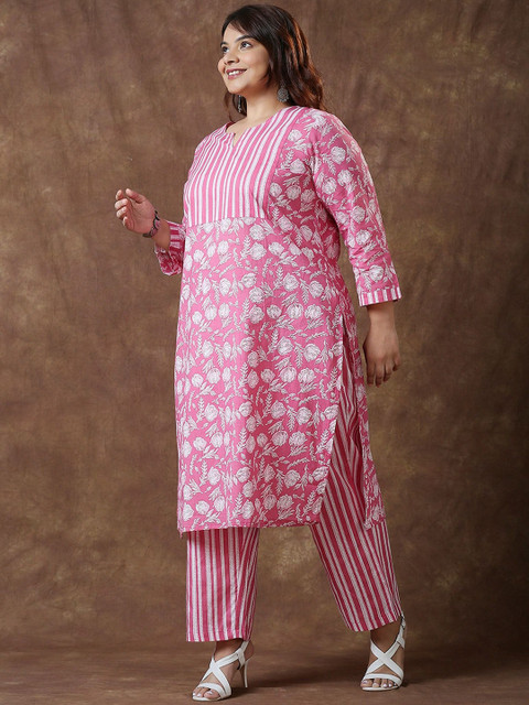 Pink and white printed top, has a Round neck with a notch, three-quarter sleeves