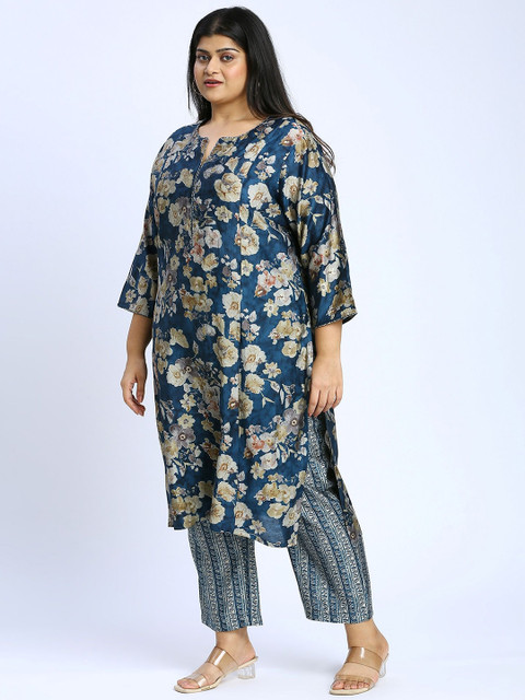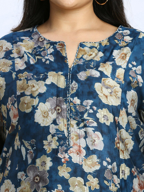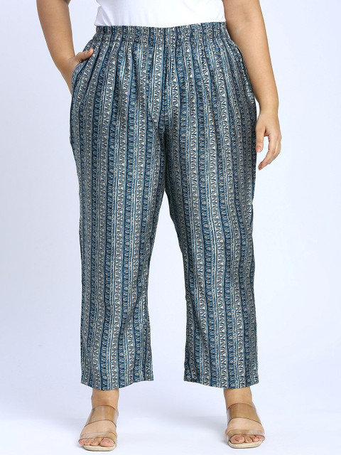 Blue printed trousers, has an elasticated waistband with slip-on closure and one pocket