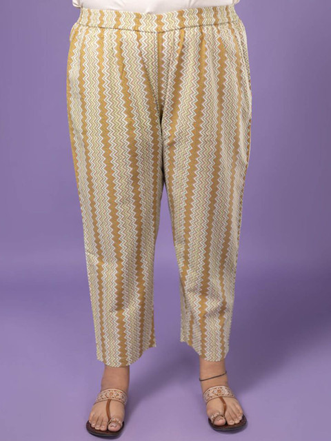 Green printed trousers, has an elasticated waistband with slip-on closure and one pocket