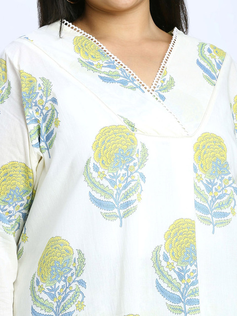 Mint green printed top, has a V-neck, three-quarter sleeves