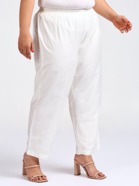 White solid trousers, has an elasticated waistband with slip-on closure and one pocket