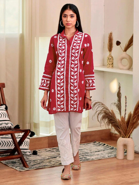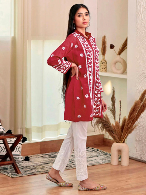 Kurta includes a Embroidered Straight kurta Crafted from soft Viscose Rayon fabric for all-day comfort Red ethnic ideal for Festive occasions Kurta graceful silhouette Wash care: Dry Clean