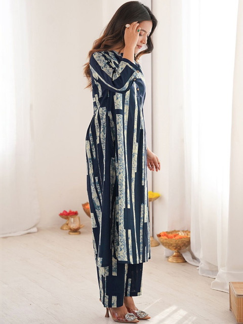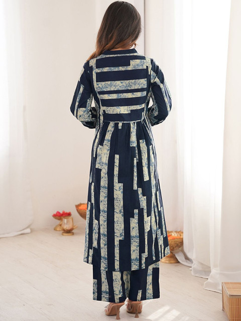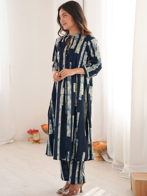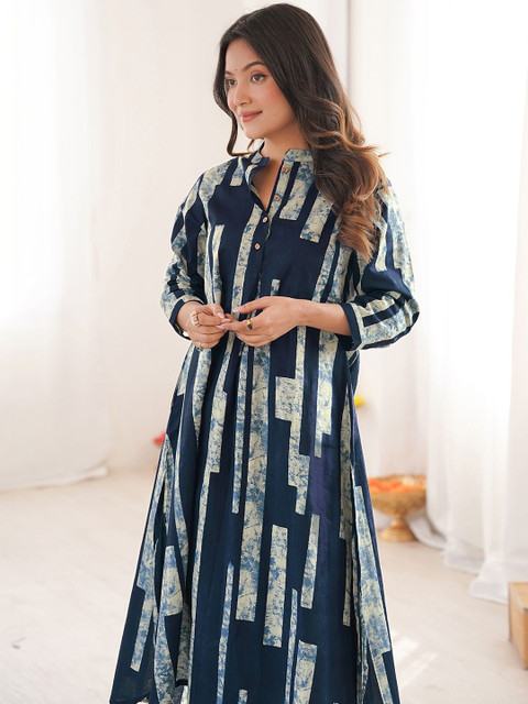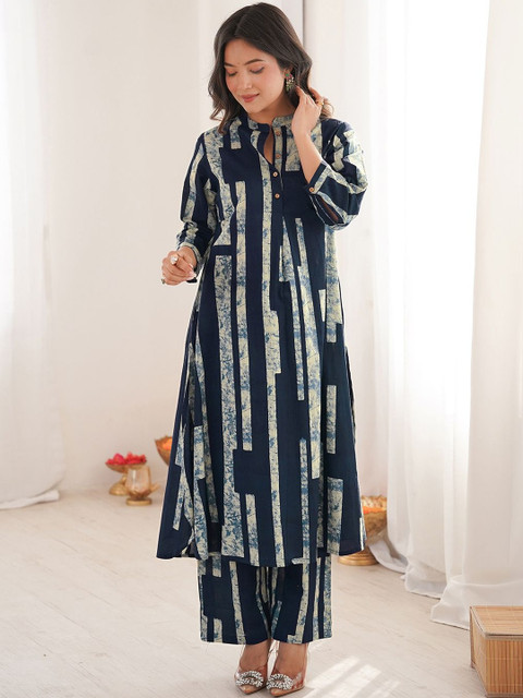 Kurta set includes a Printed Straight kurta, Cotton Blend Bottom Crafted from soft Cotton Blend fabric for all-day comfort Navy Blue ethnic set ideal for Festive occasions Kurta bottom with graceful silhouette Wash care: Dry Clean