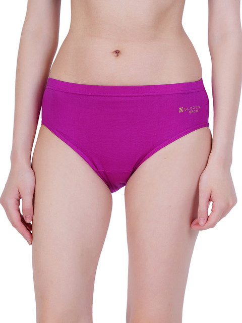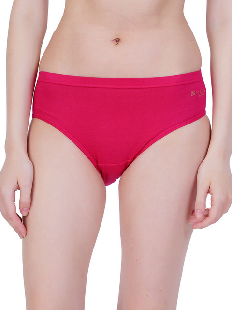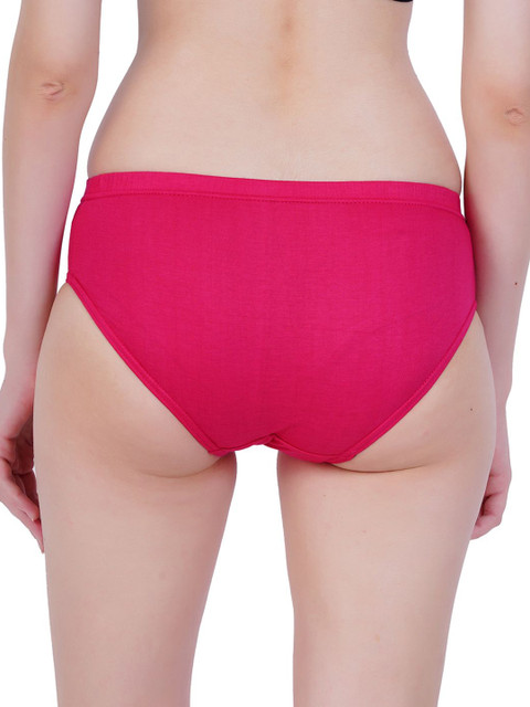 Magenta colored mid-rise basic briefs, has an outer elasticated waistband and a double layered contoured pouch
