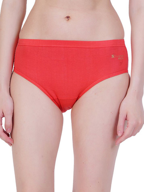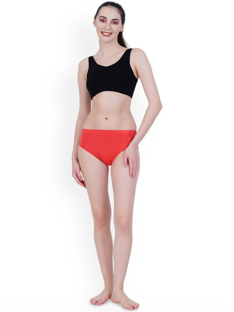 Red colored mid-rise basic briefs, has an outer elasticated waistband and a double layered contoured pouch