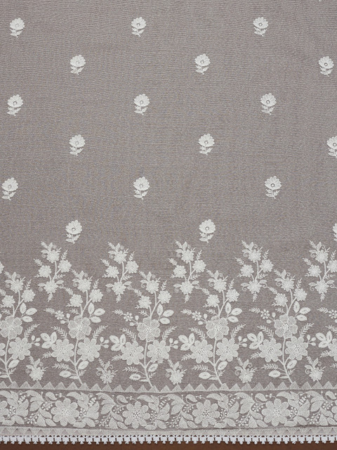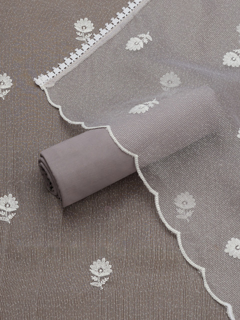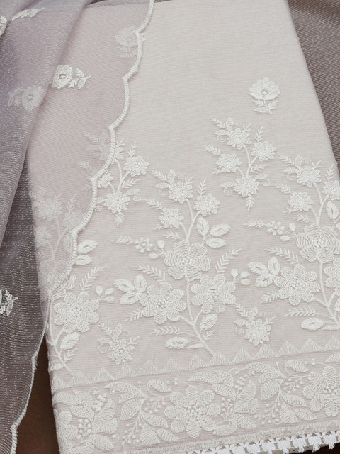 Grey and white embroidered unstitched dress material