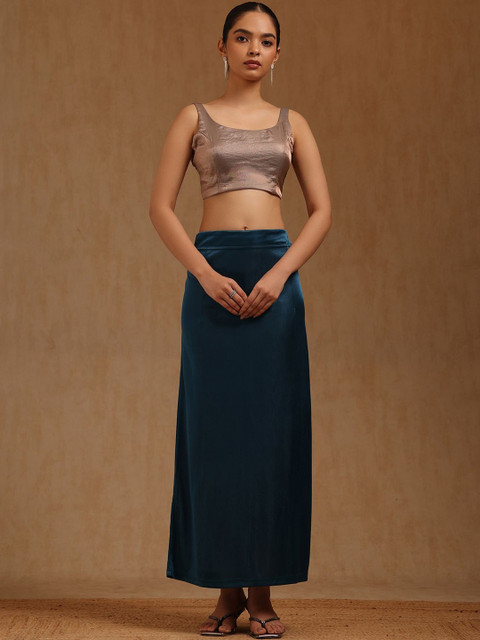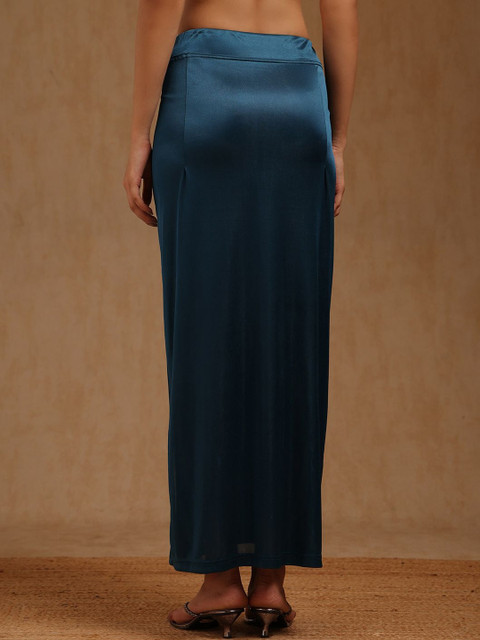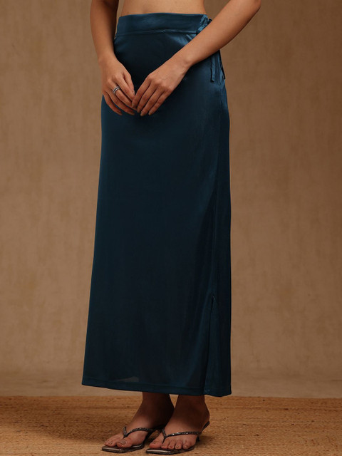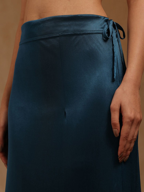 Blue solid and bottom with slit, high rise saree shapeware has an elasticated waistband, and drawstring closure