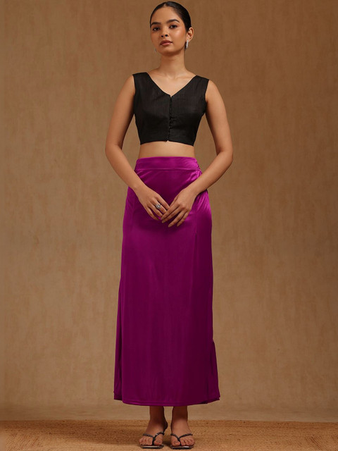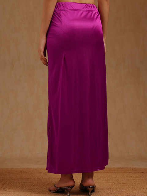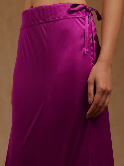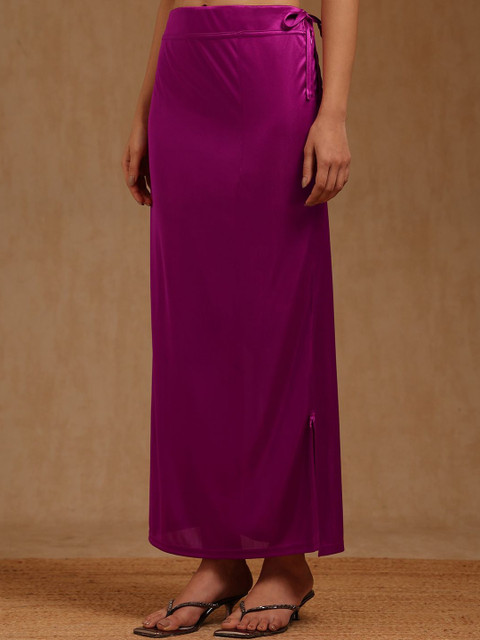 Magenta solid and bottom with slit, high rise saree shapeware has an elasticated waistband, and drawstring closure