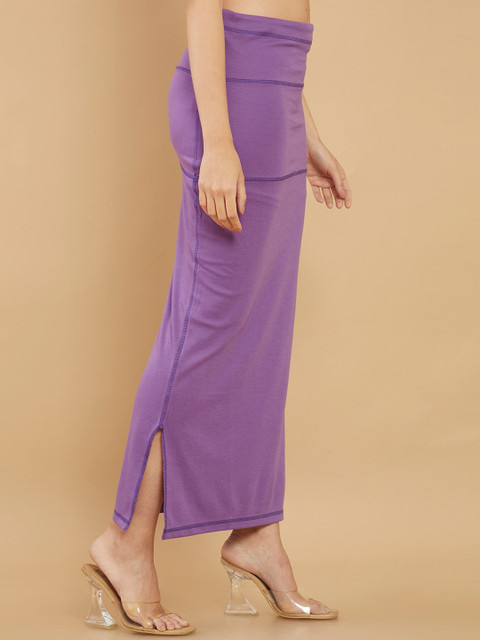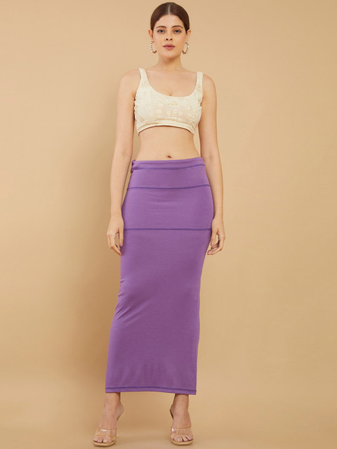 Lavender-coloured solid saree shapewear, has an elasticated waistband with slip-on closure, side-slit and a straight hemline