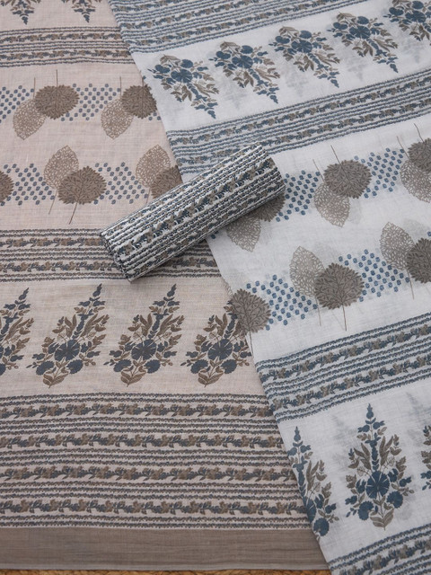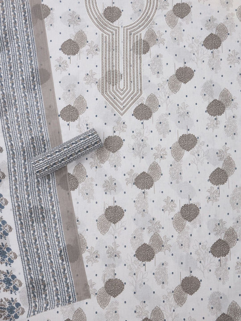 White printed unstitched dress material