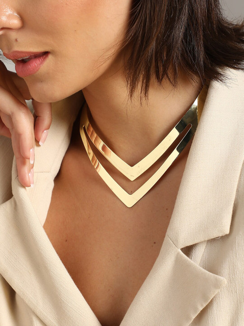 This gold-plated V-shaped layered necklace is elegant and minimal, with a smooth, polished finish that adds a refined touch to any outfit. Lightweight and comfortable, it sits beautifully on the neckline and works well for both everyday wear and special occasions.