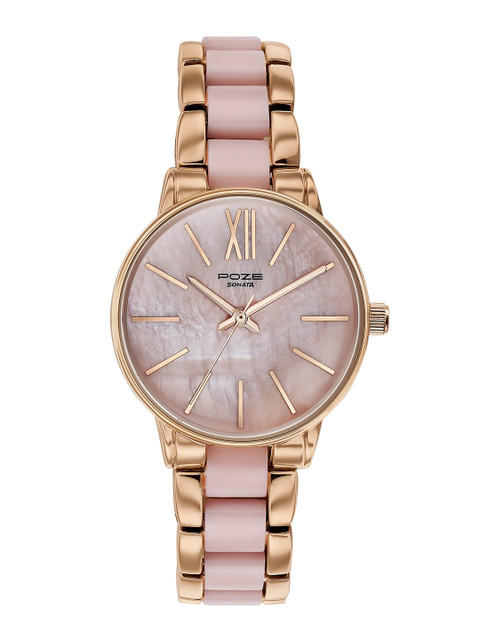 Sonata Poze Quartz Analog With Pink Mother Of Pearl Dial Watch For Women – Sp80051kd01w