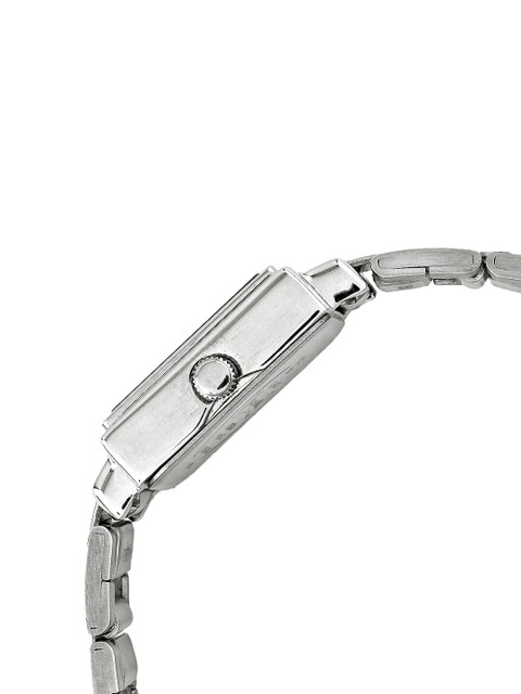 Redefine classic elegance with this Sonata watch designed to complement every occasion. The rectangular silver dial showcases clear Arabic numerals and sleek silver hands, ensuring easy readability with timeless appeal. Its polished silver stainless steel strap adds a refined touch, while the compact design makes it perfect for both casual outings and formal settings. A versatile accessory, this watch blends simplicity with sophistication for the modern woman.