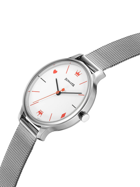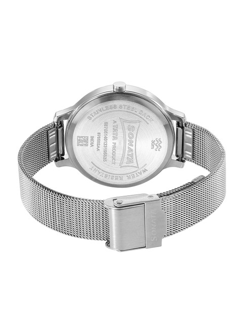 Strap Style: silver-toned, bracelet style, stainless steel strap with a foldover