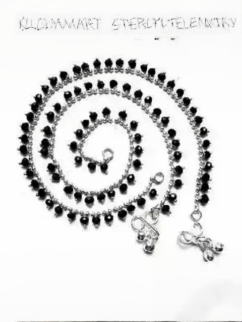 Silver toned and black anklets, has artificial beaded details
