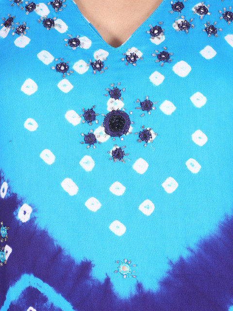 3 reviews for SOUNDARYA Blue Bandhani Print Unstitched Dress Material