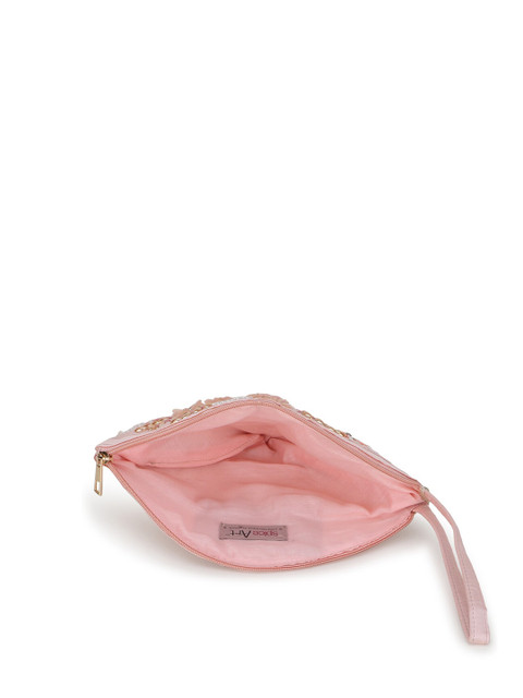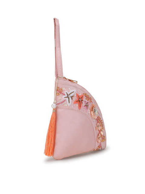 Pink embroidered tasselled potli clutches