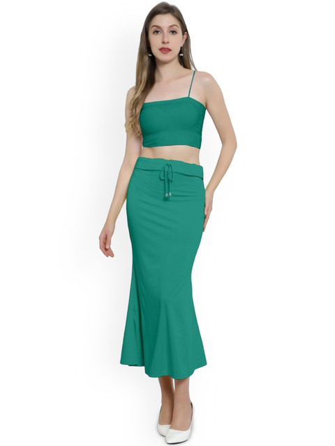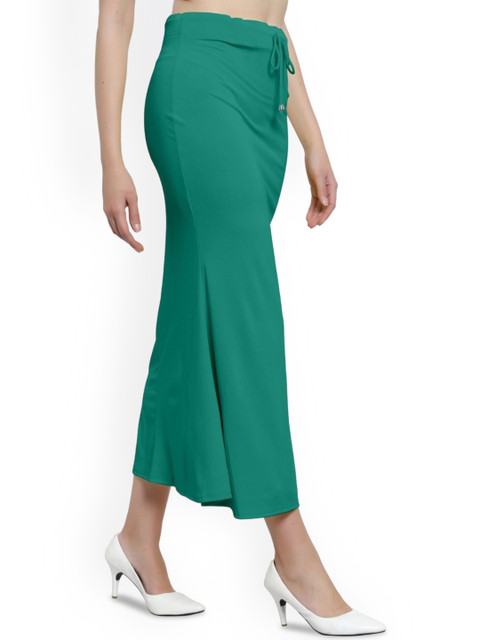 Green solid saree shaper has an elasticated waistband with drawstring closure, and a double-layered gusset