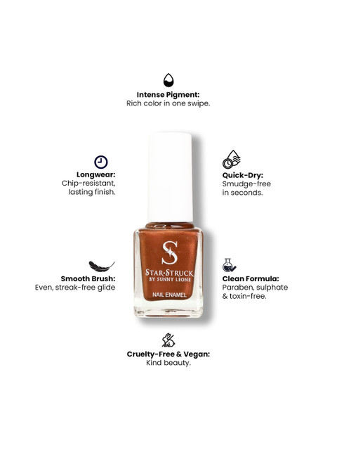 | Special Features | Intense Pigment: Rich color in one swipe.Quick-Dry: Smudge-free in seconds.Longwear:Chip-resistant, lasting finish.Smooth Brush: Even, streak-free glide.Clean Formula: Paraben, sulphate &, toxin-free.Top Coat available in Matte &, Glossy.Cruelty-Free &, Vegan: Kind beauty.5 Finishes: Shimmer, Metallic, Pearl, Glossy &, Sparkle. |