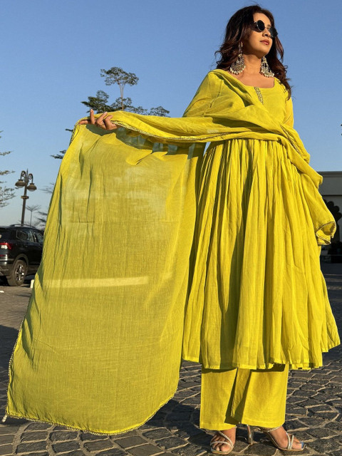 Lime green solid Kurta with Palazzos with dupatta