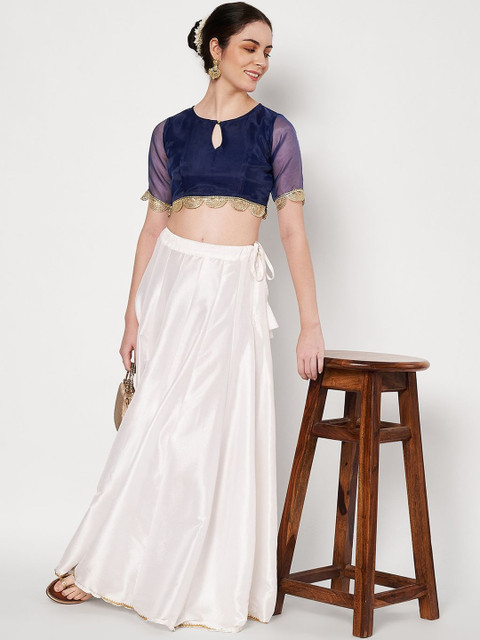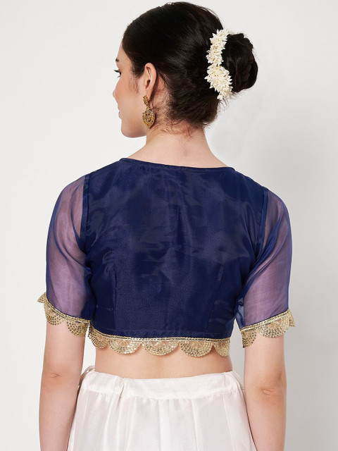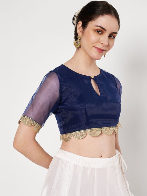- Navy blue and gold-toned crop regular top